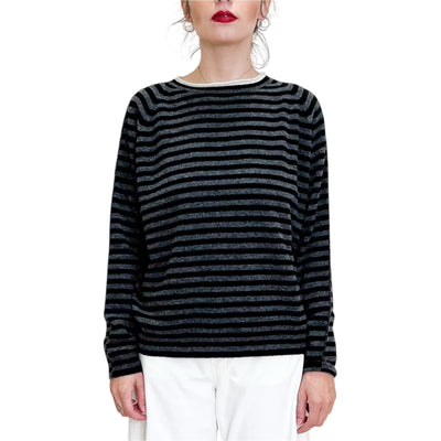 Floor - Maglia Girocollo a Righe Nero e Acciaio