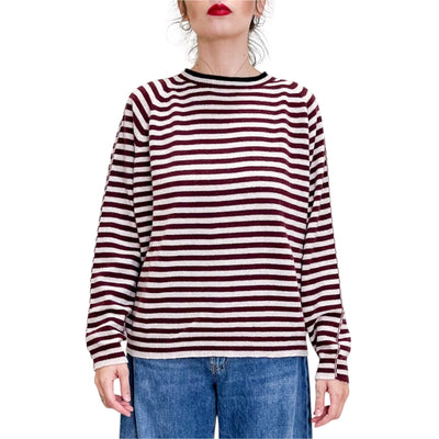 Floor - Maglia Girocollo a Righe Barolo e Quarzo
