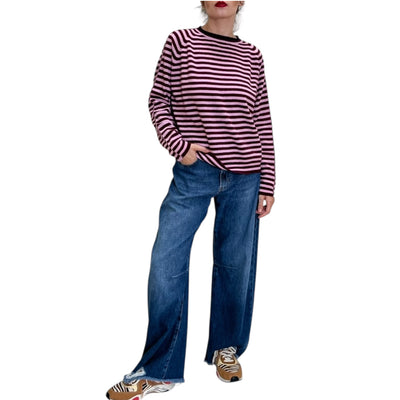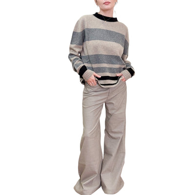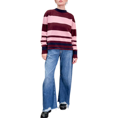 Floor - Maglia Girocollo a Righe Sesamo e Barolo