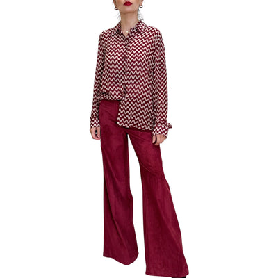 Good Match - Pantaloni Palazzo Velluto Millerighe Cherry