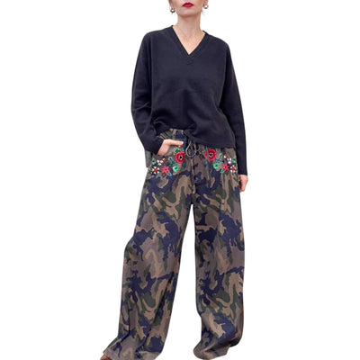 Front Street - Pantaloni Palazzo Camu con Ricami
