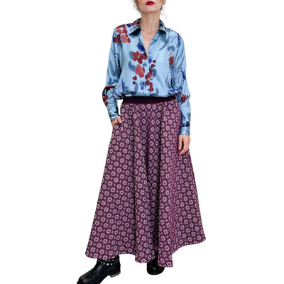 Niu - Gonna lunga in Taffetas a Palloncino Indaco