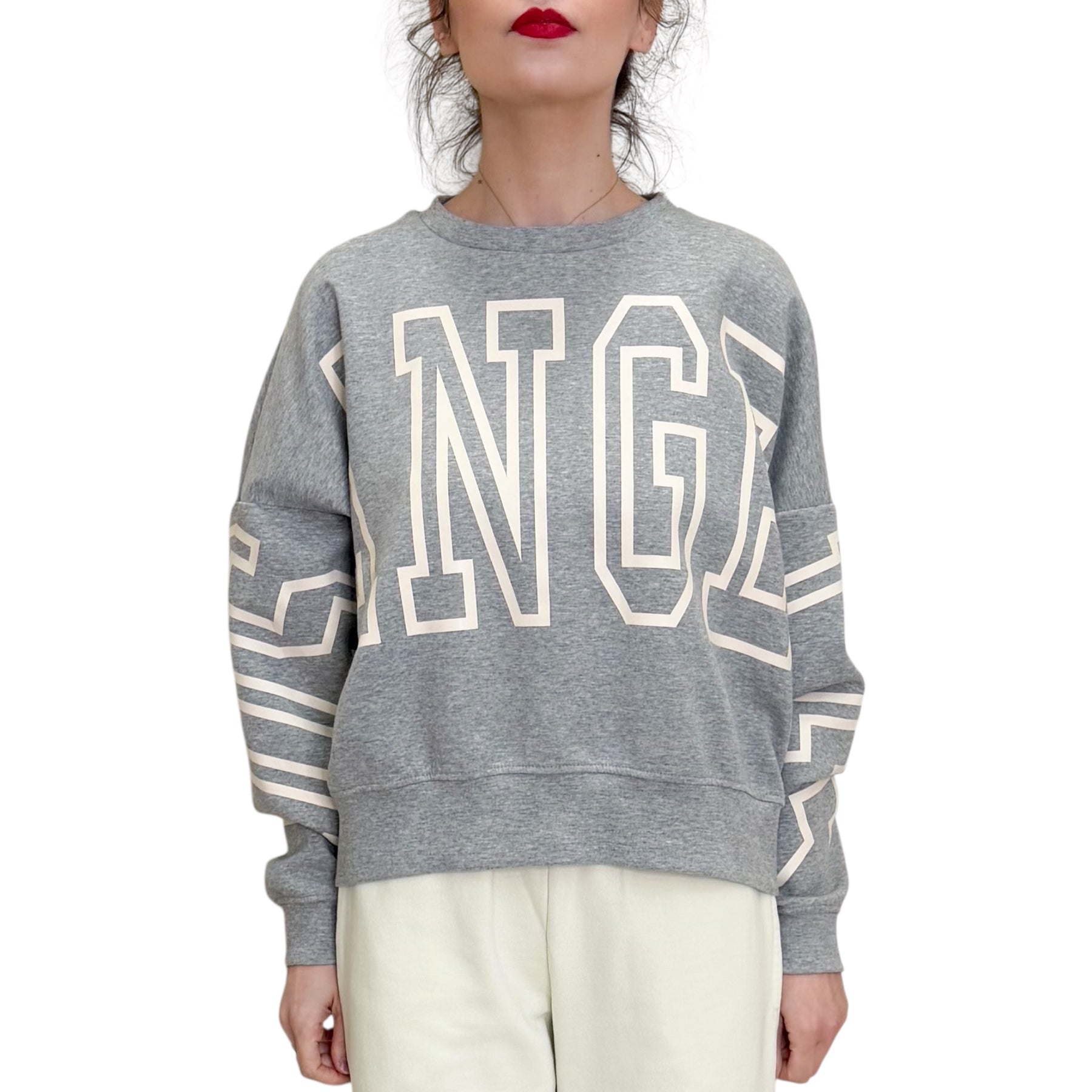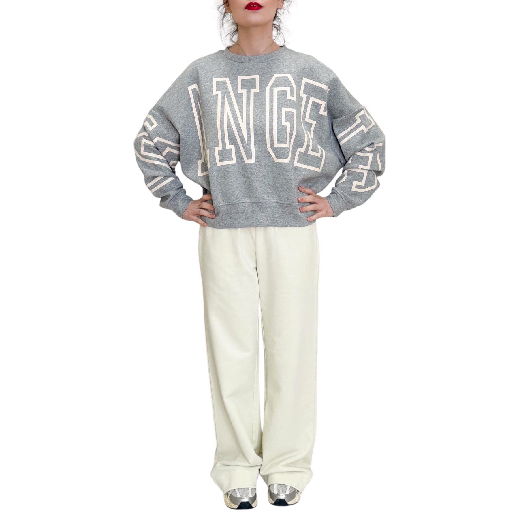 Felpa in cotone , poliestere ed elastam over con scritta Los Angeles bianca .