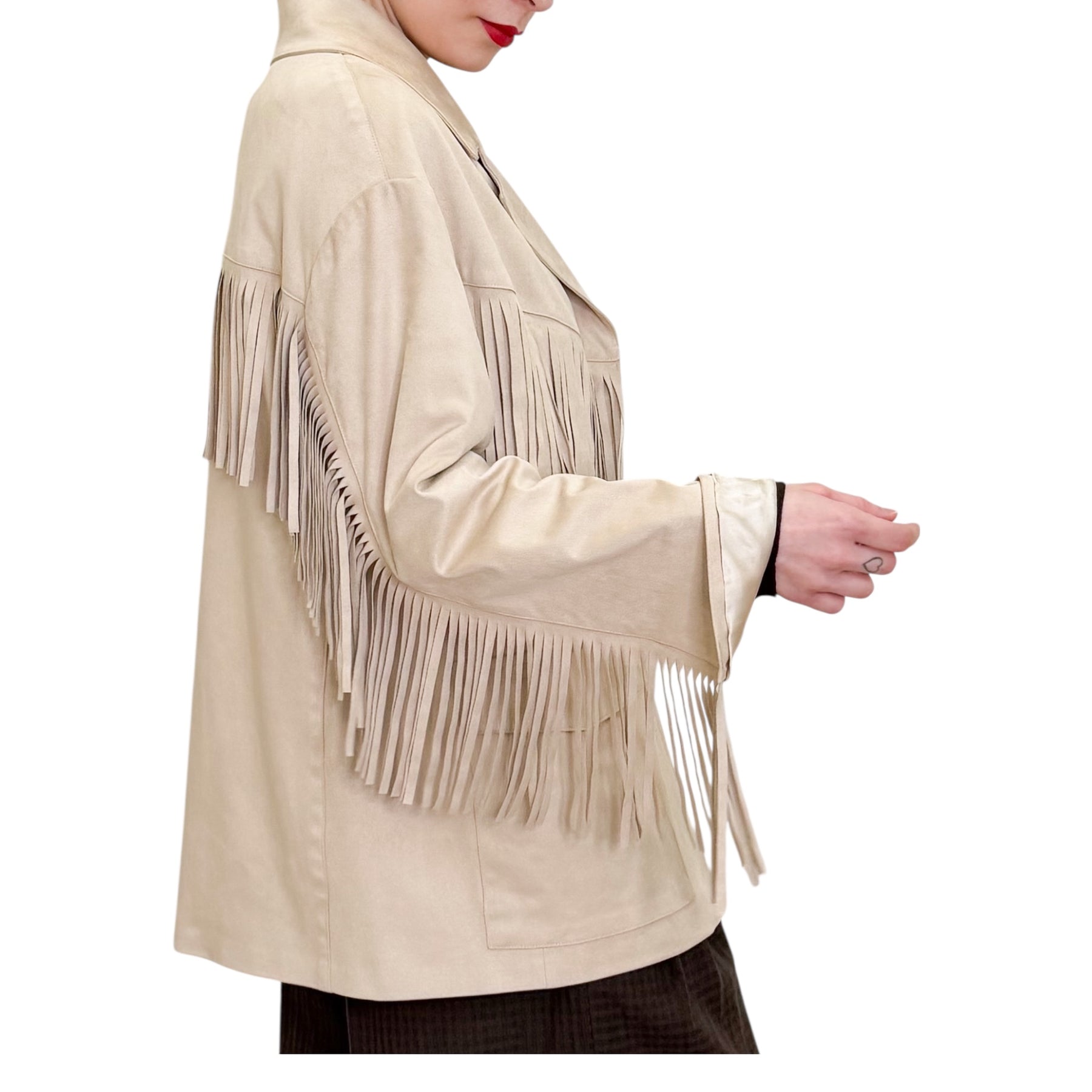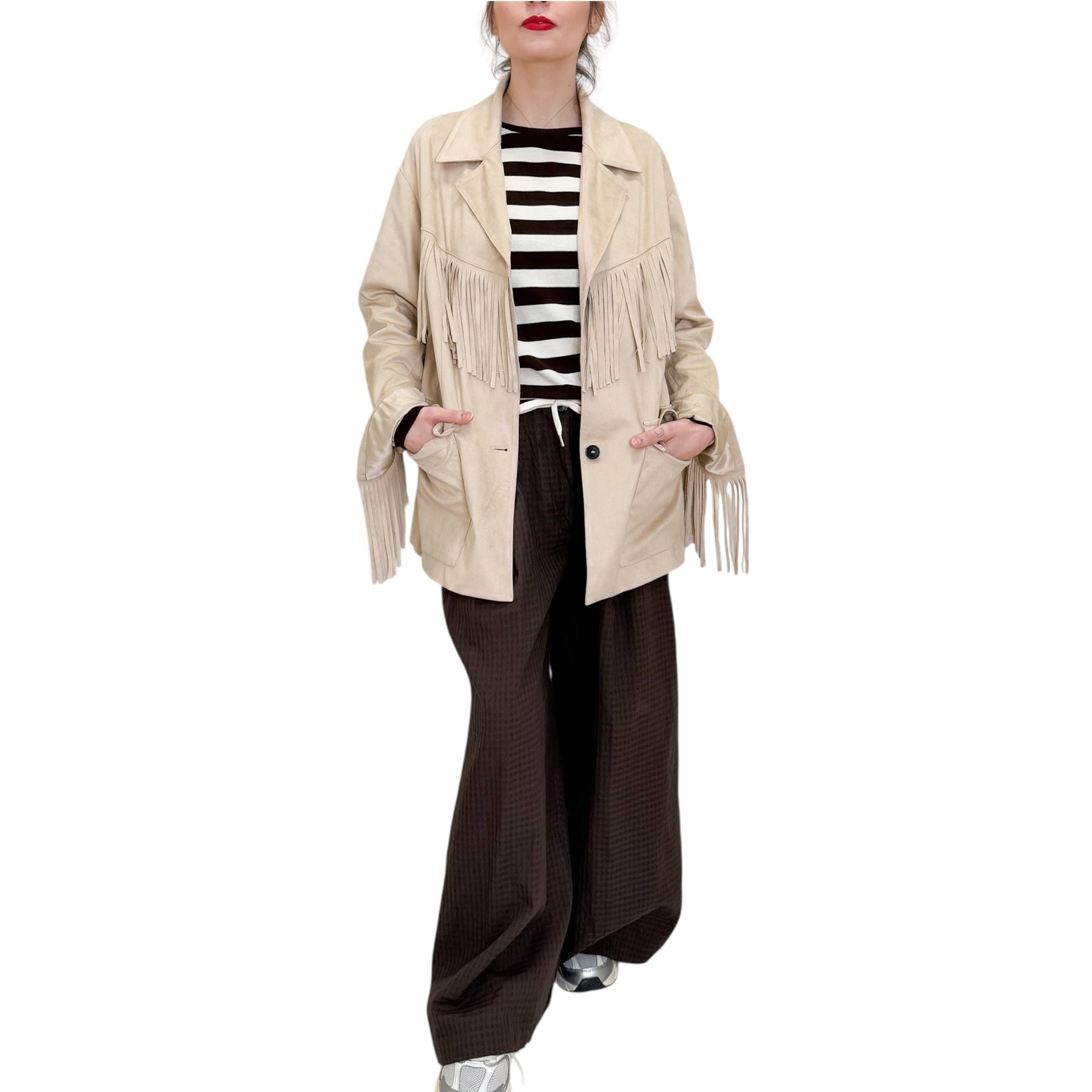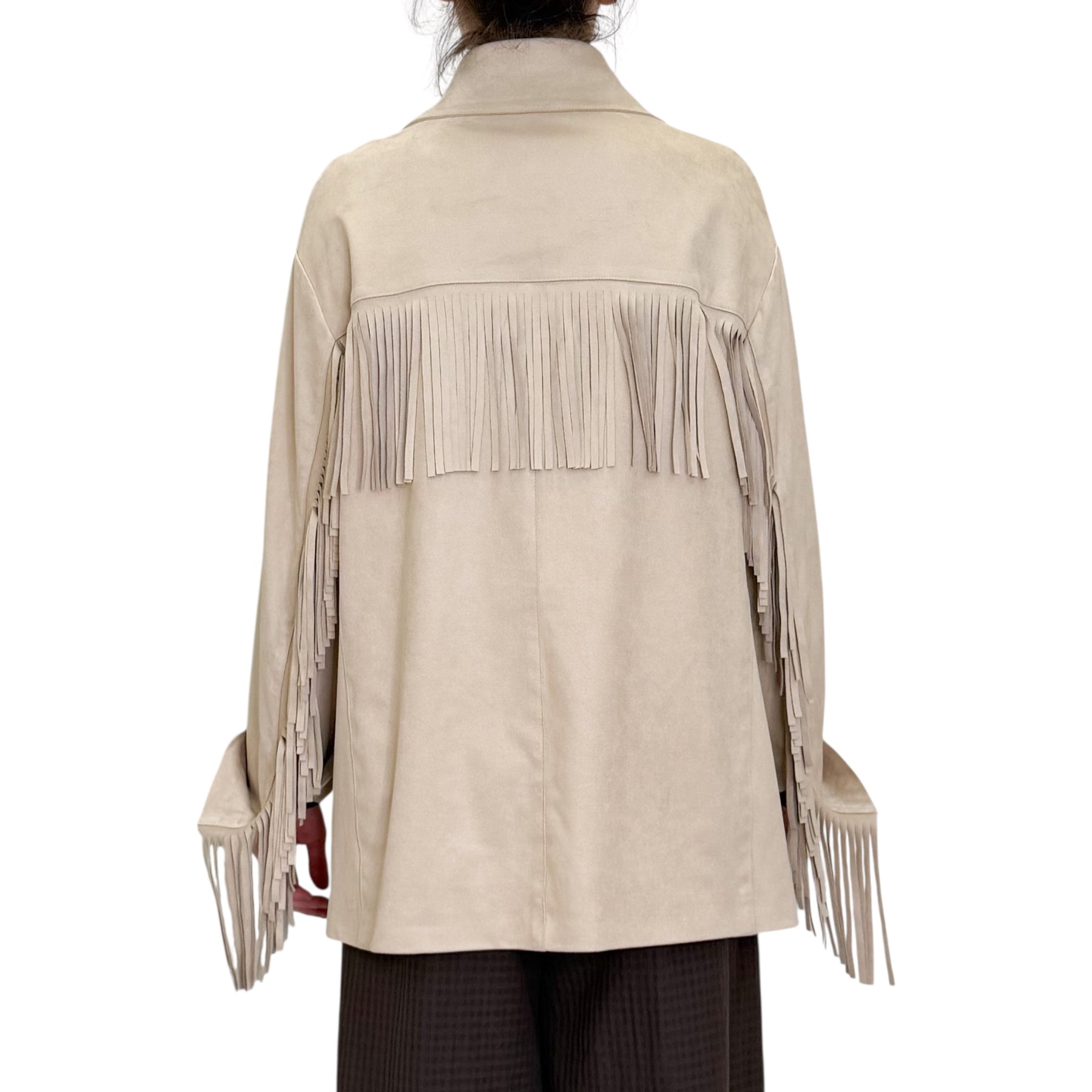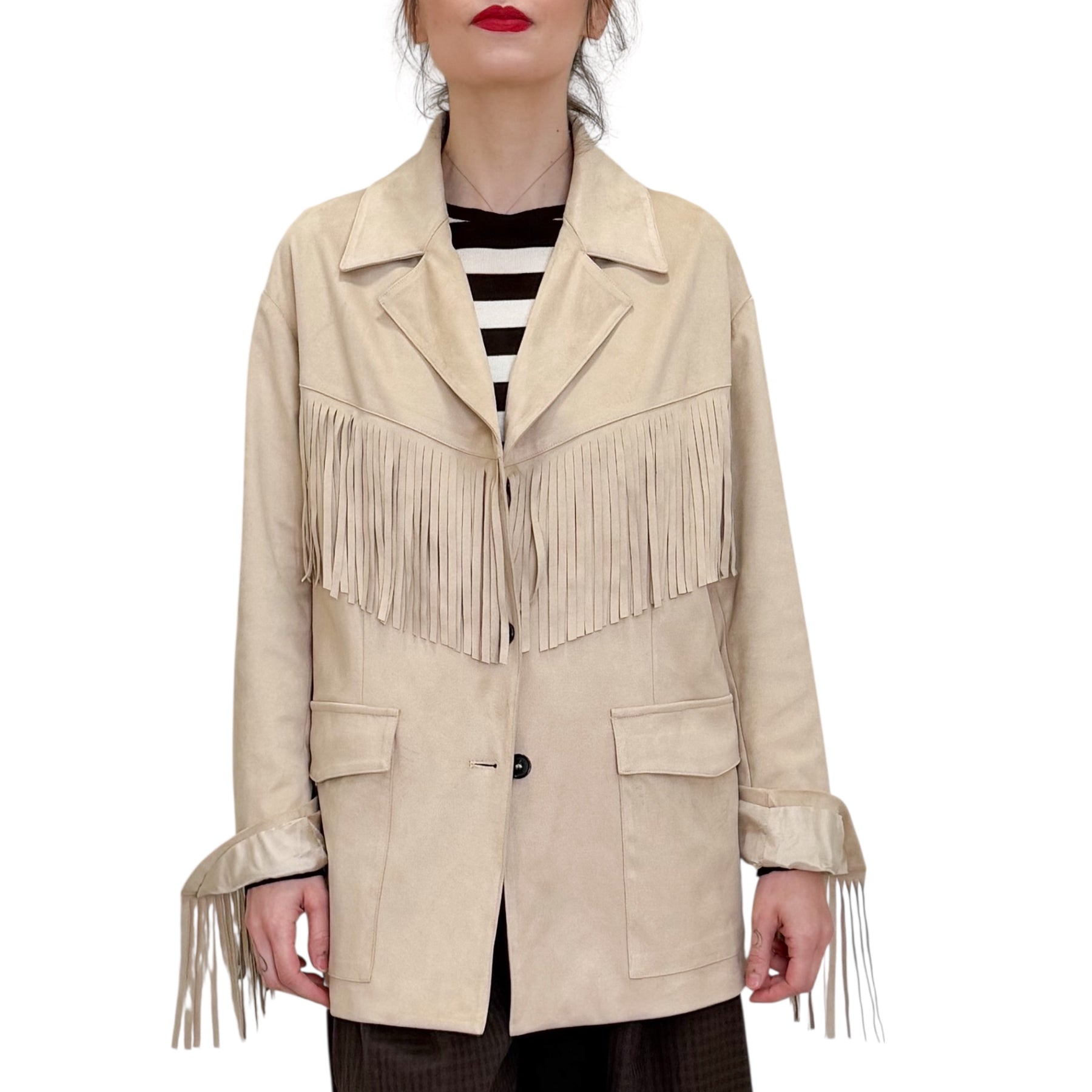 Giacca over in Ecosuede con frange e tasche .