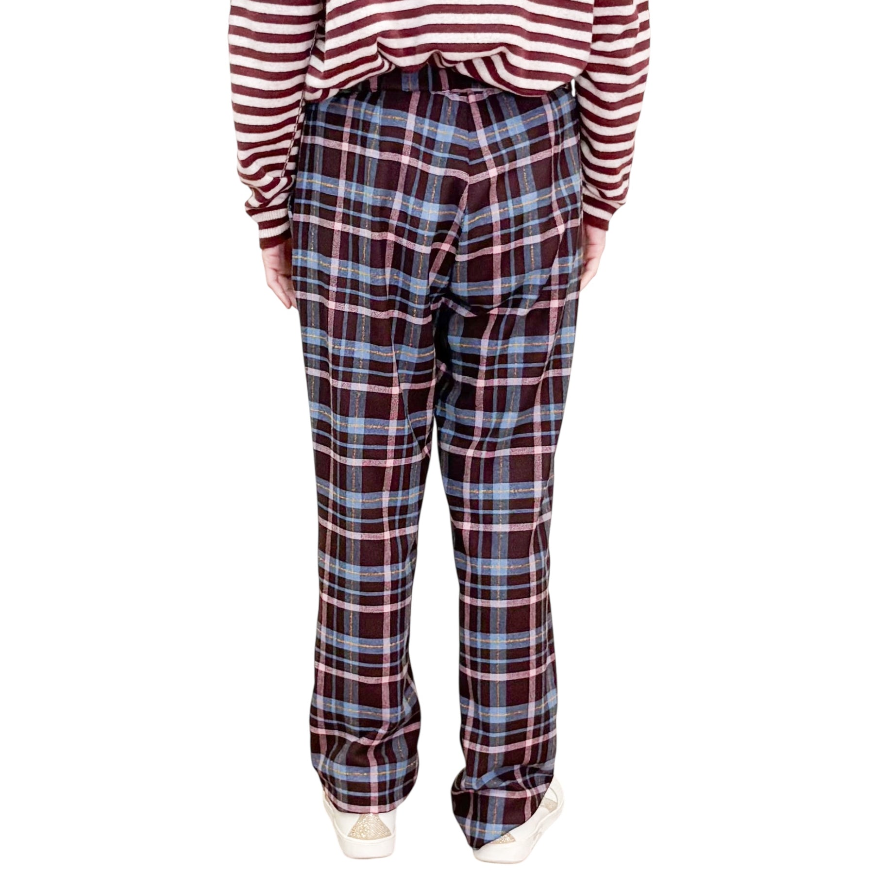 Pantaloni modello jogger in flanella di lana ,viscosa ,poliestere ed elastam check ,con elastico in vita con coulisse e tasche .