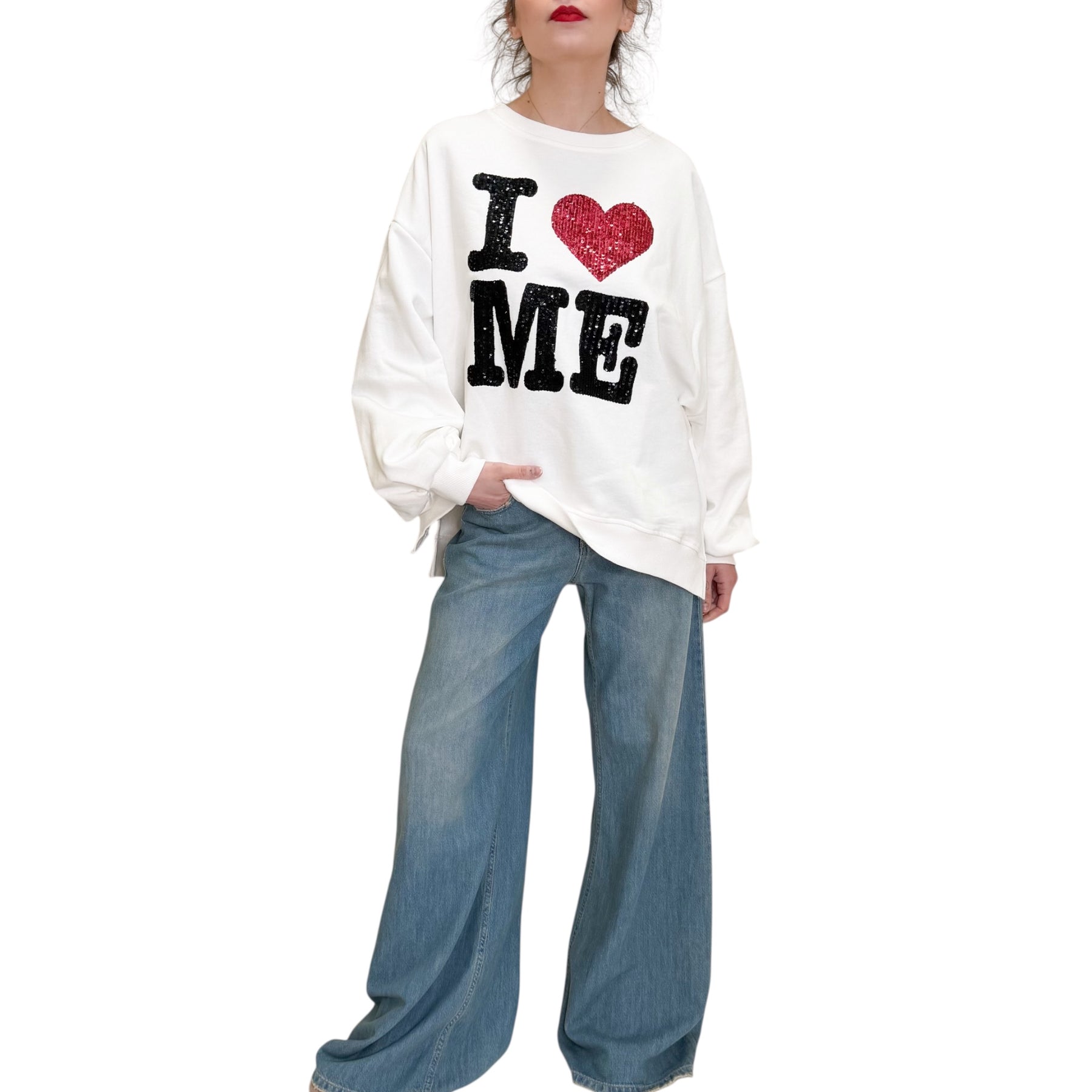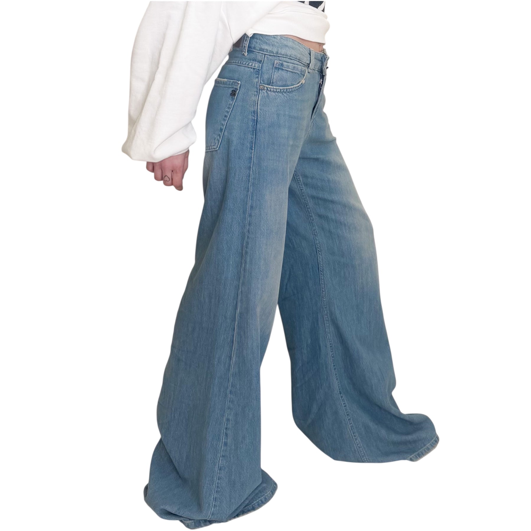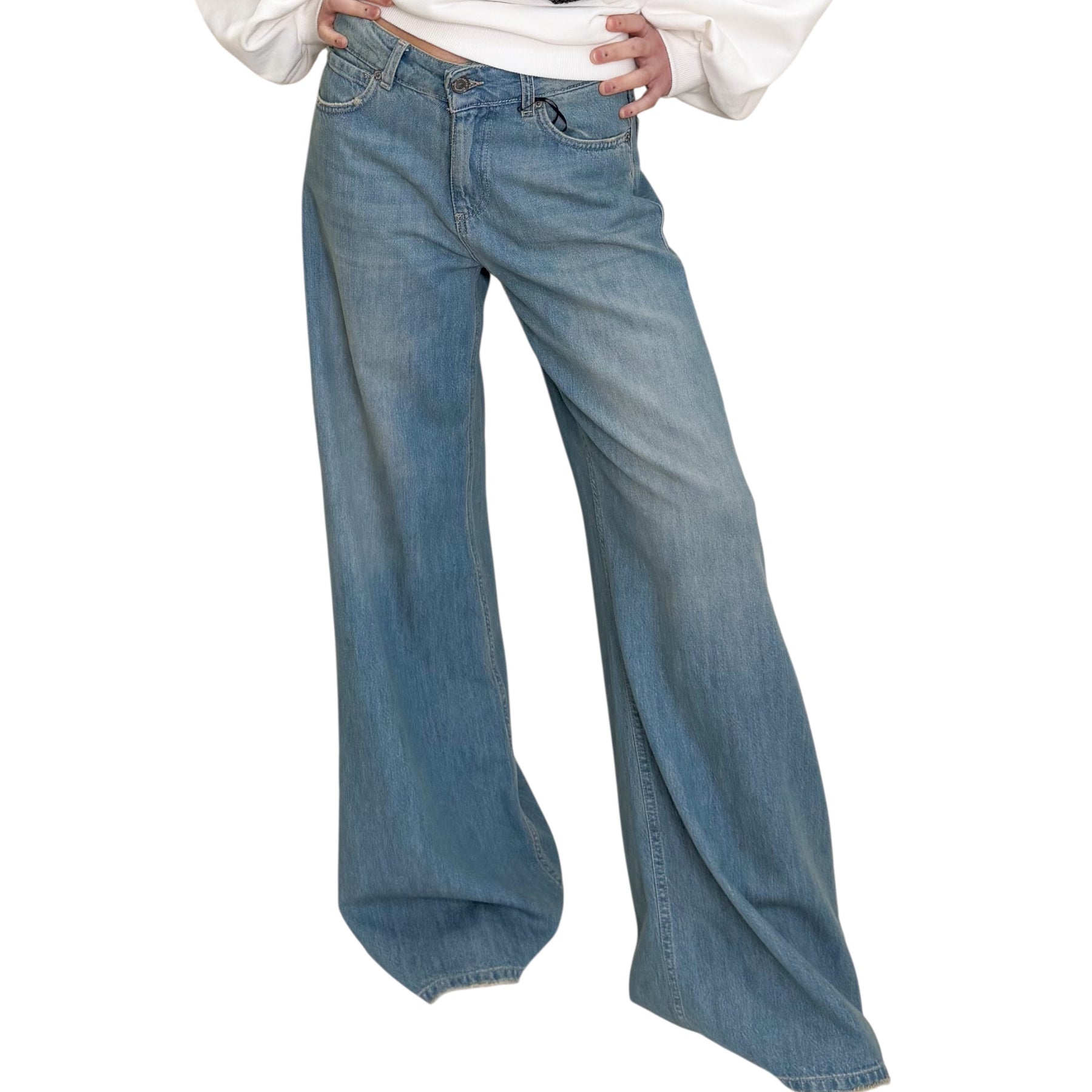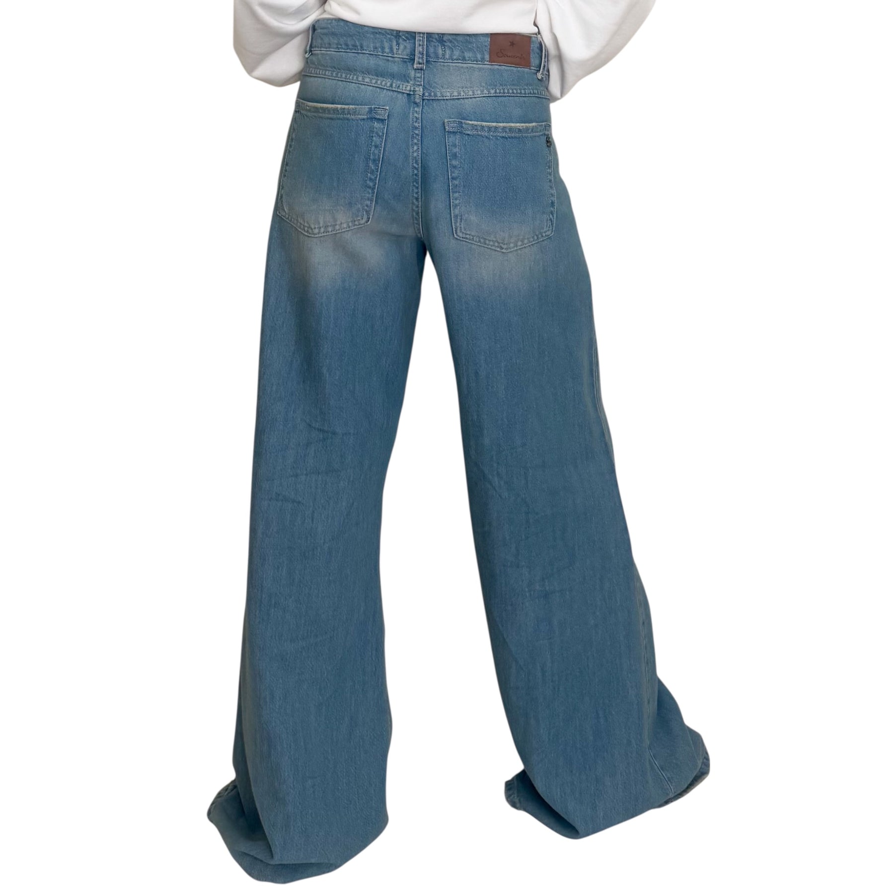 Jeans a palazzo in cotone elasticizzato con lavaggio medio .
