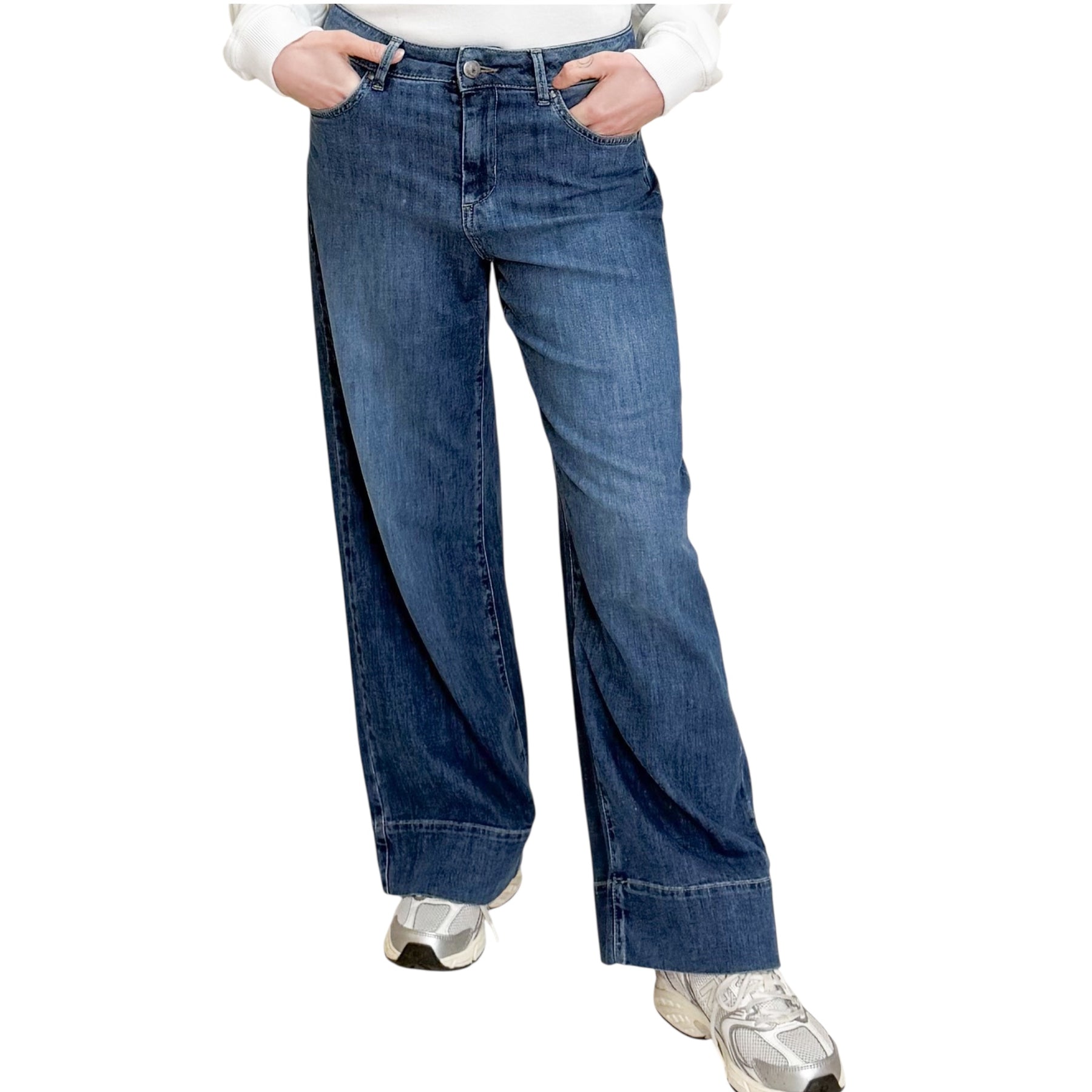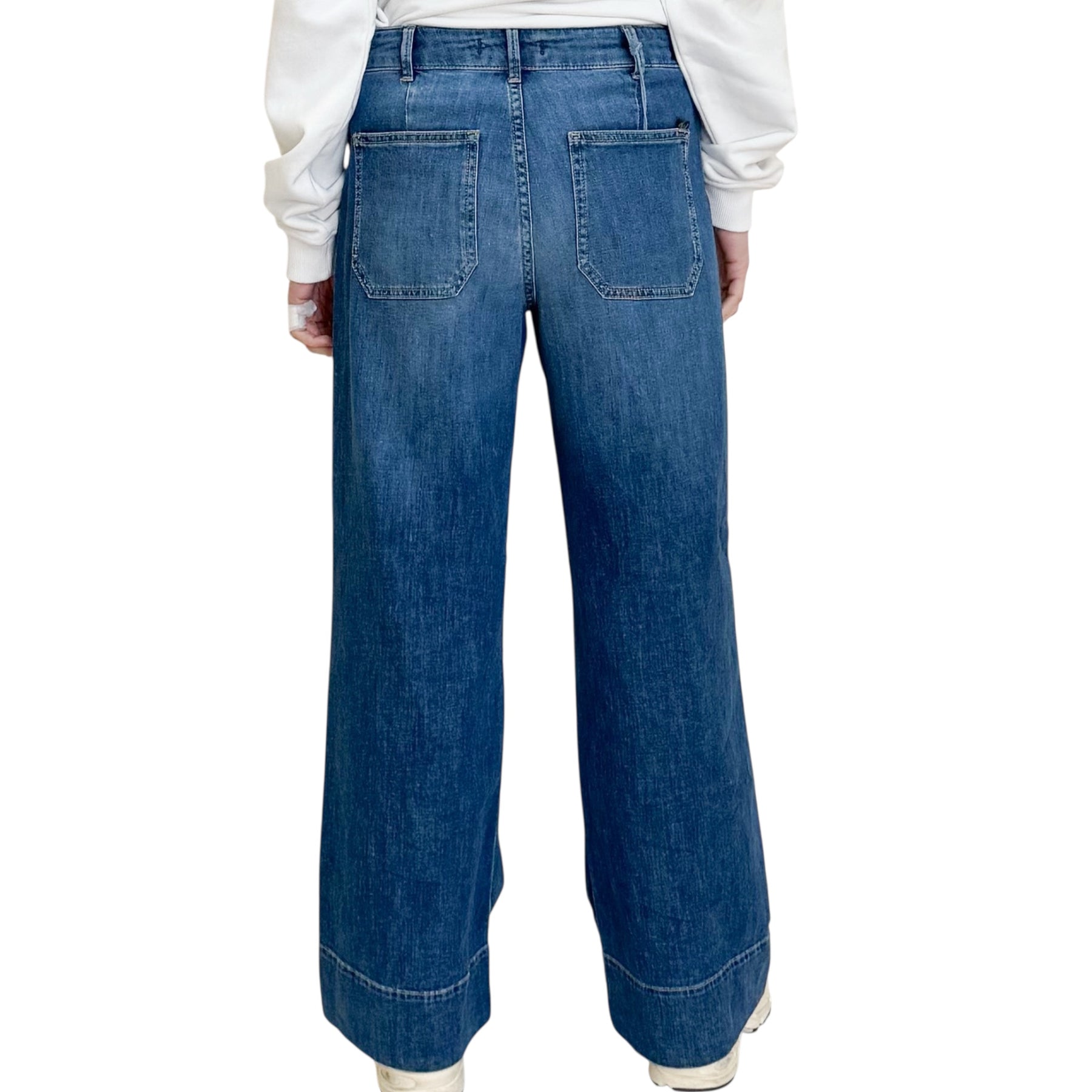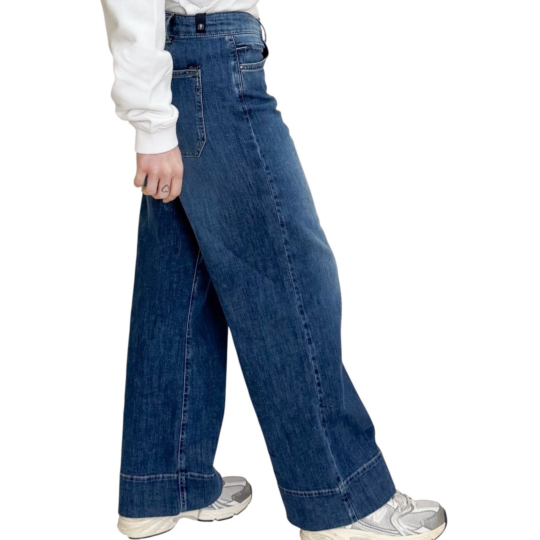 Jeans Palazzo Crop in morbido Denim di cotone elasticizzato con lavaggio medio .
