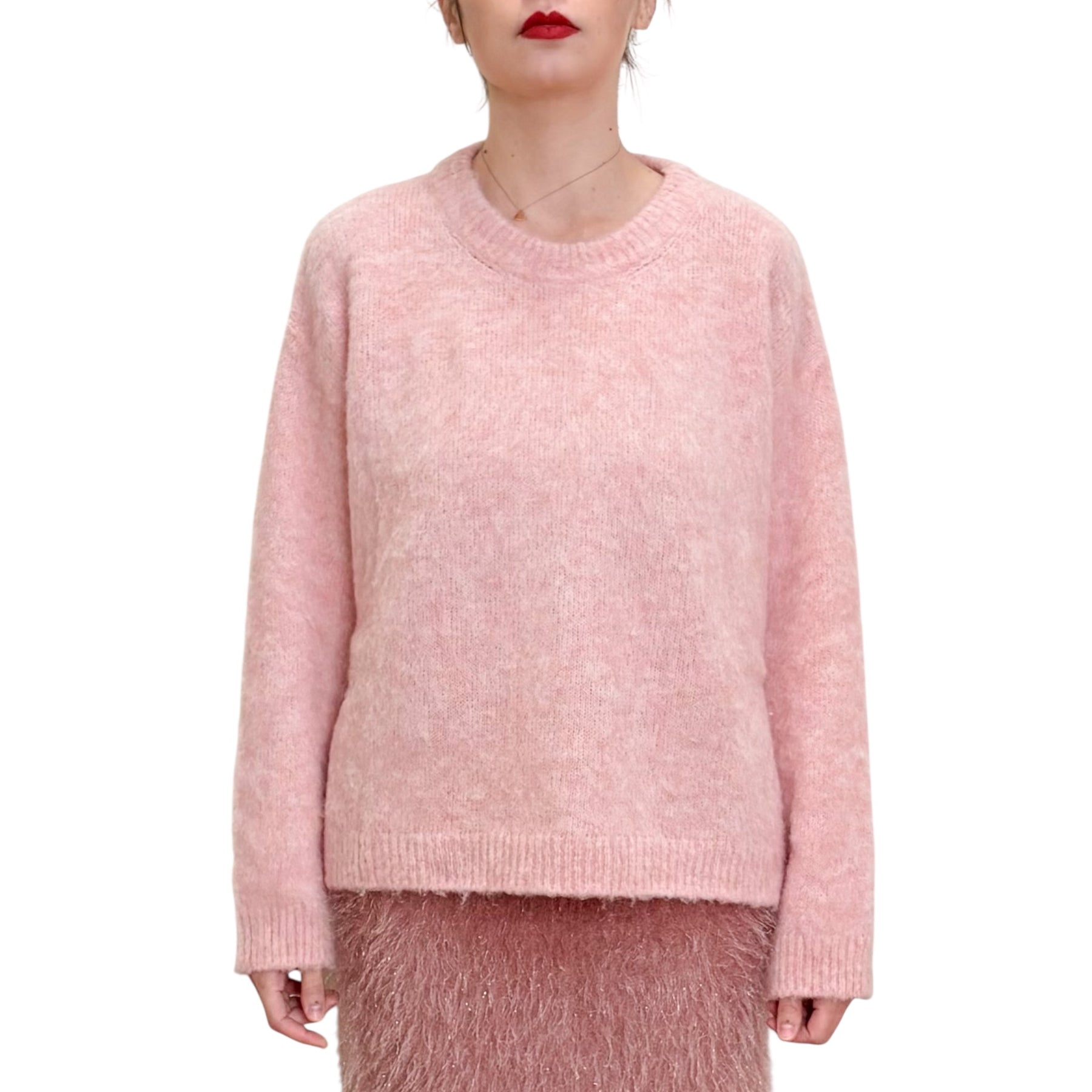 Maglia Giroldi con linea a scatola morbida in alpaca , lana ed elastam .