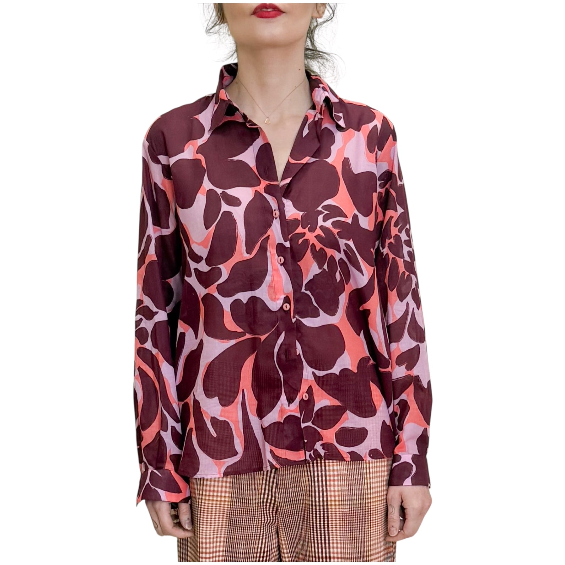 Camicia a uomo over in mussola di cotone con stampa floreale .