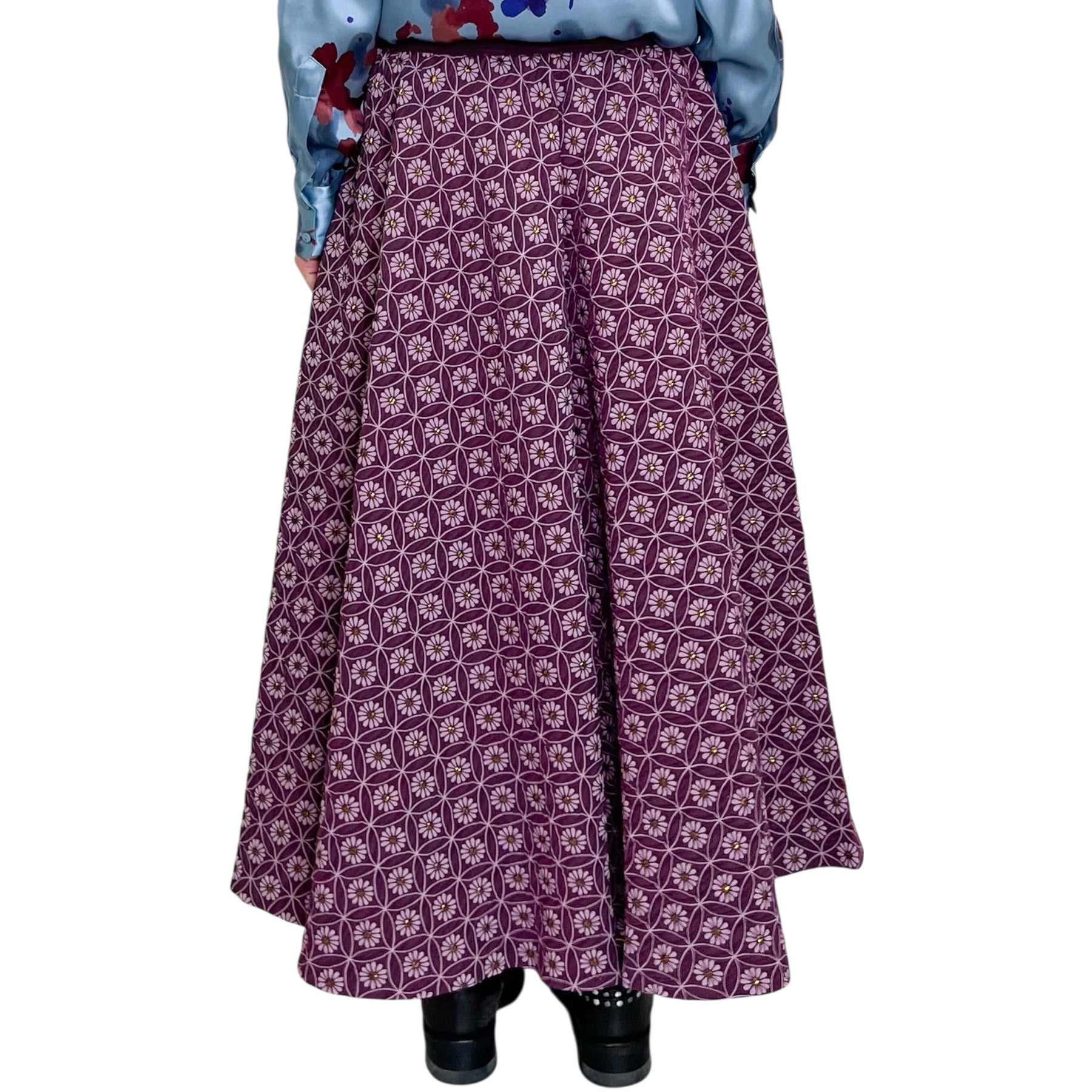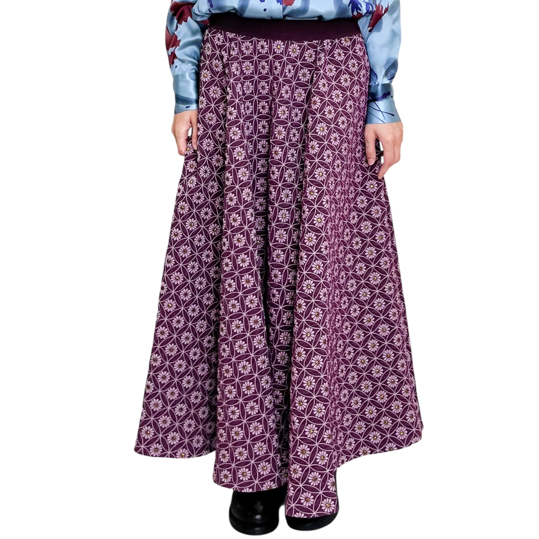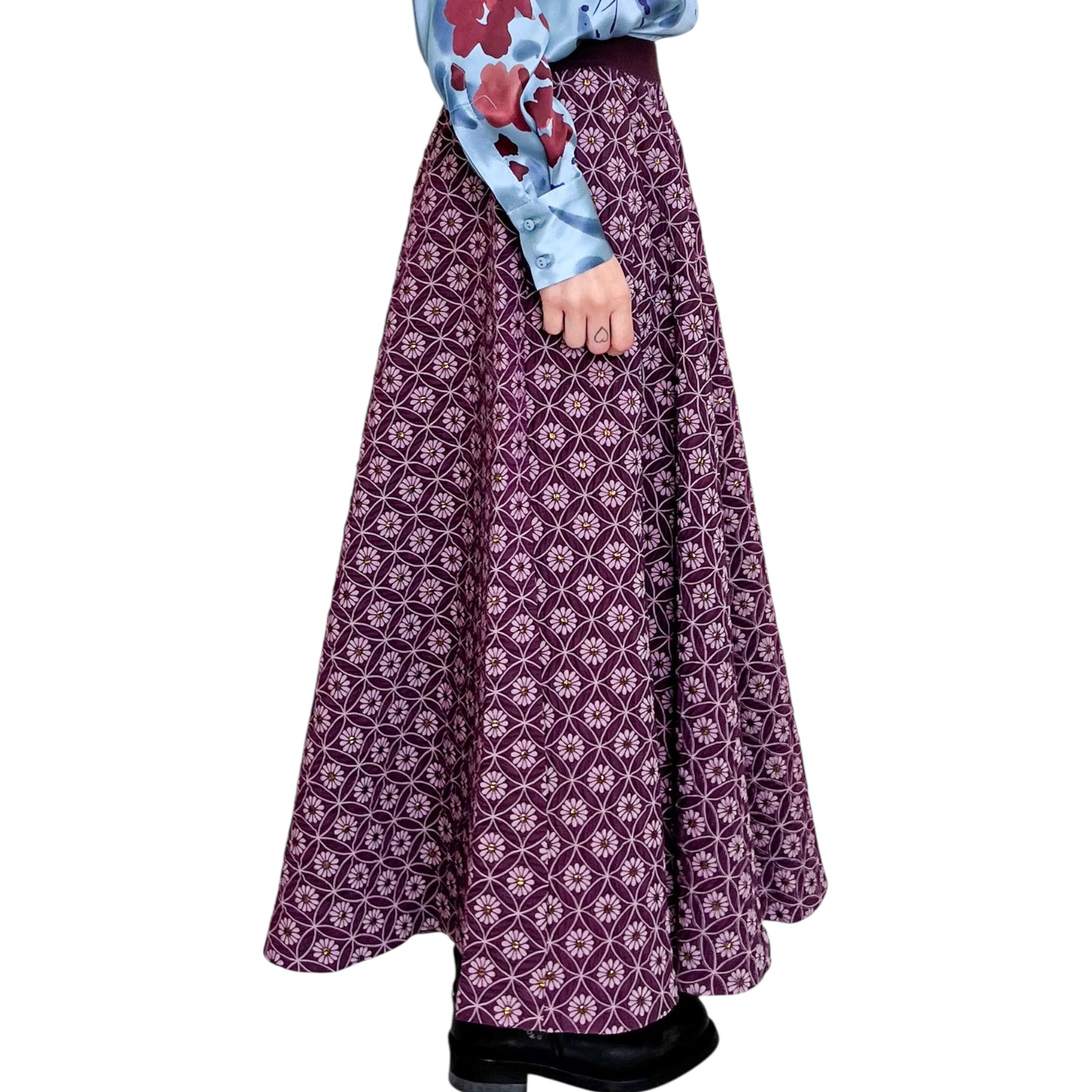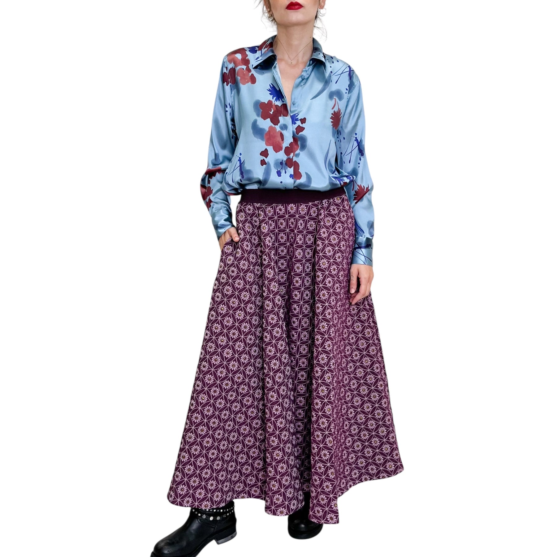Gonna lunga a ruota in broccato di cotone , poliestere e lurex con elastico in vita e tasche .