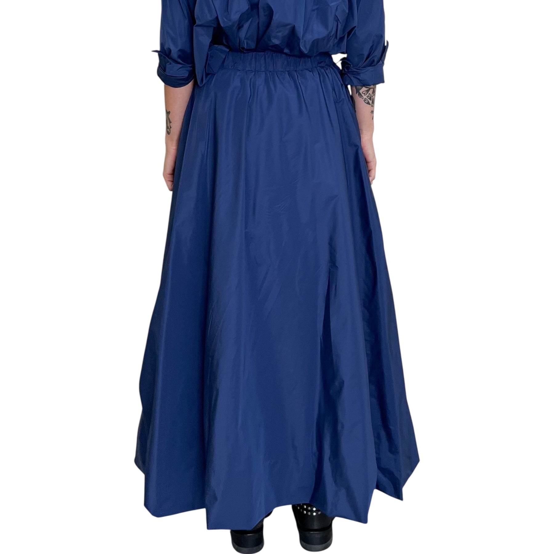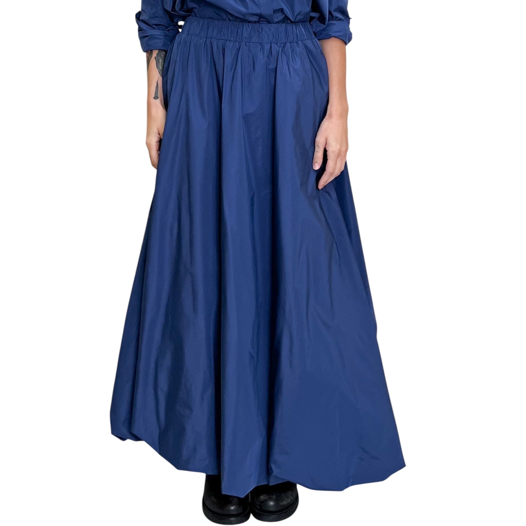 Gonna lunga a palloncino in taffetas di viscosa, poliestere ed acetato con elastico in vita e tasche .