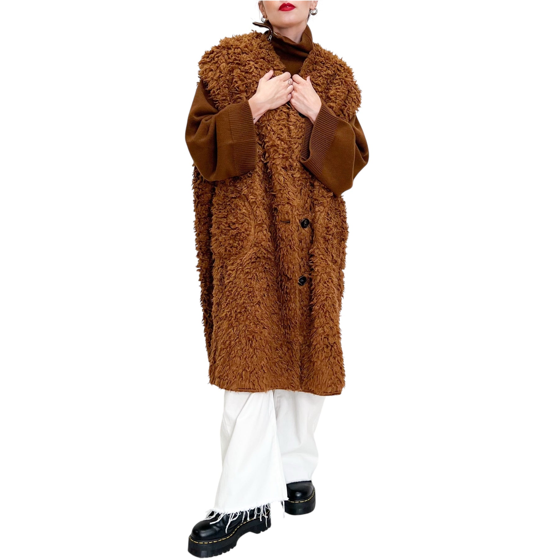 Maxi gilet in ecopelliccia reversibile con allacciatura con automatici e tasche .