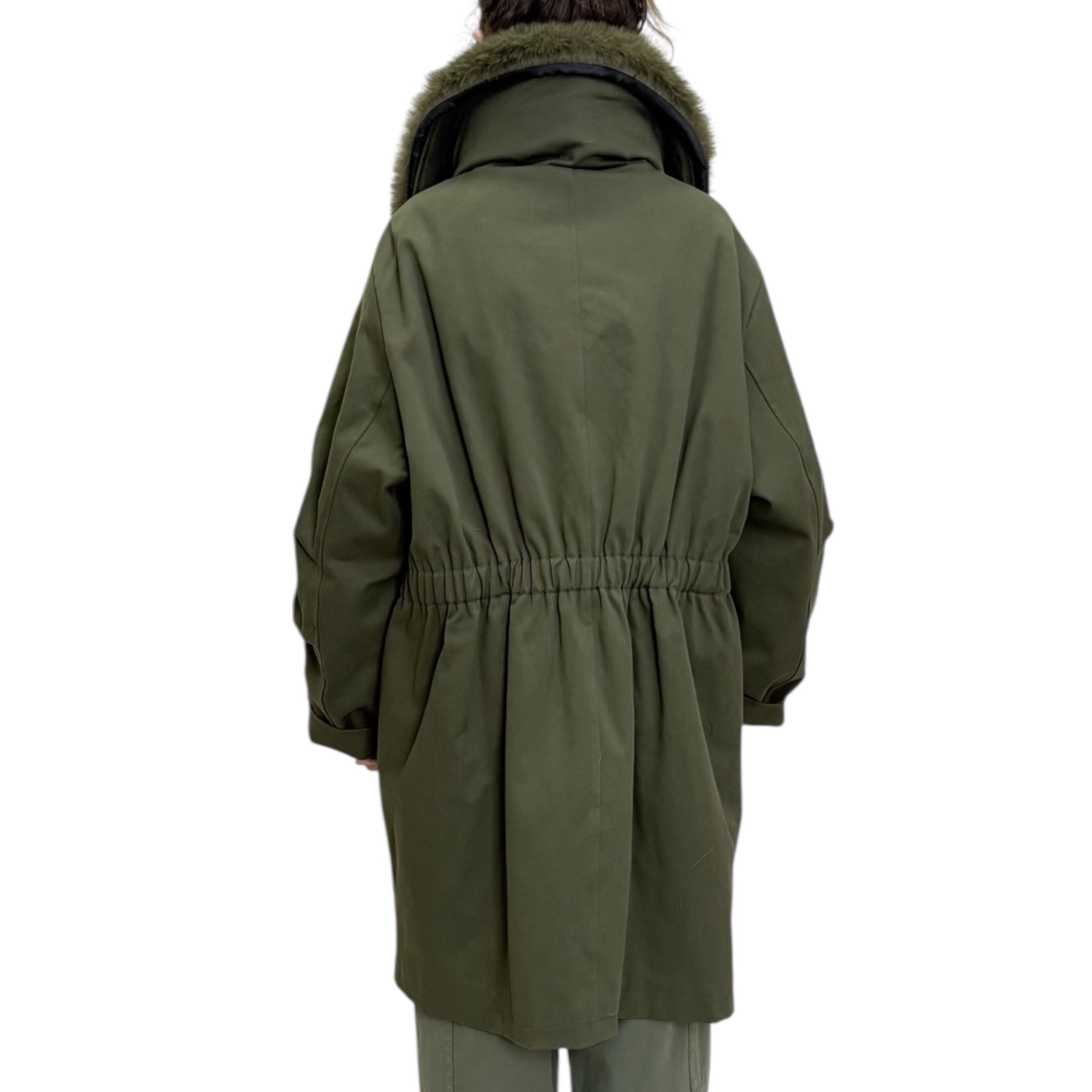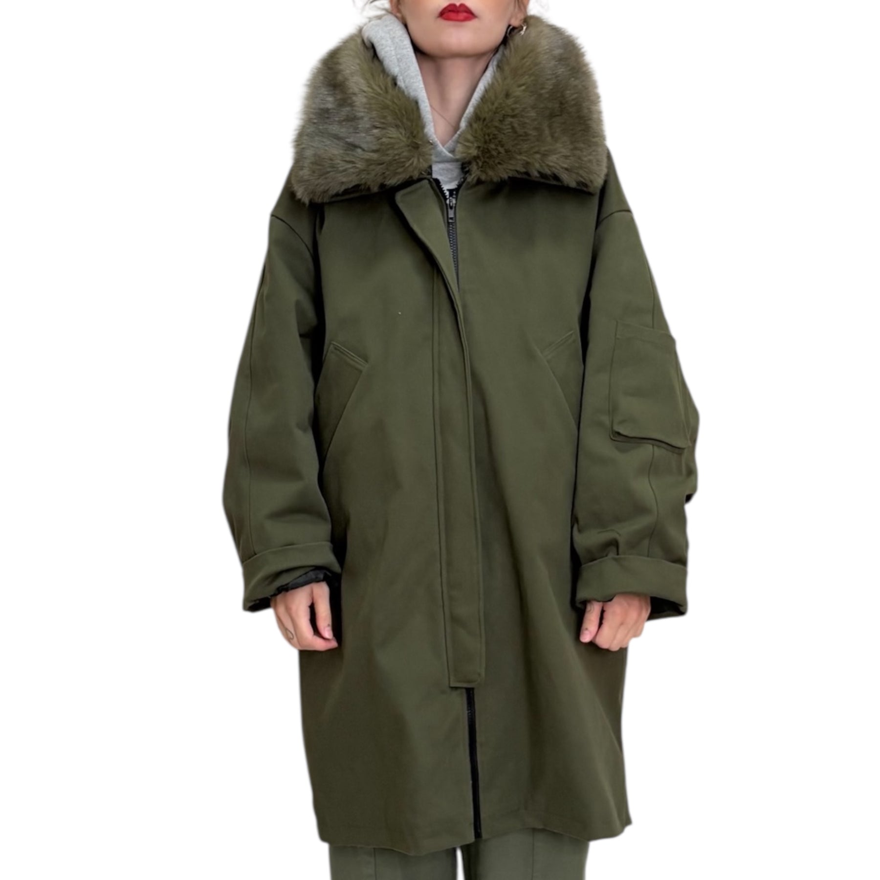 Parka in fustagno di cotone , poliestere ed elastam con leggera imbottitura , collo in ecopelliccia staccabile , tasca e coulisse regolabile nel dietro .