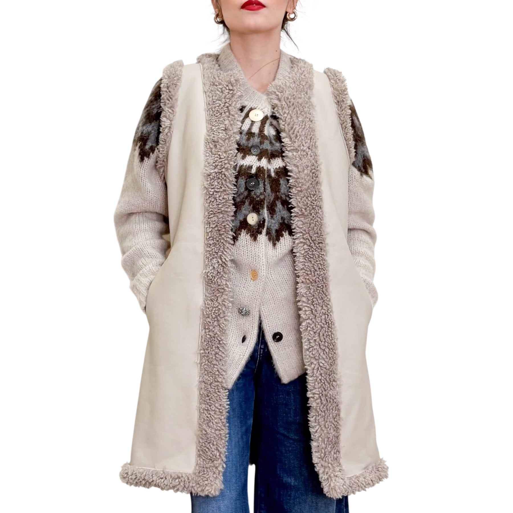 Gilet reversibile in ecopelliccia girocollo con linea asciutta , tasche e allacciatura con ganci .